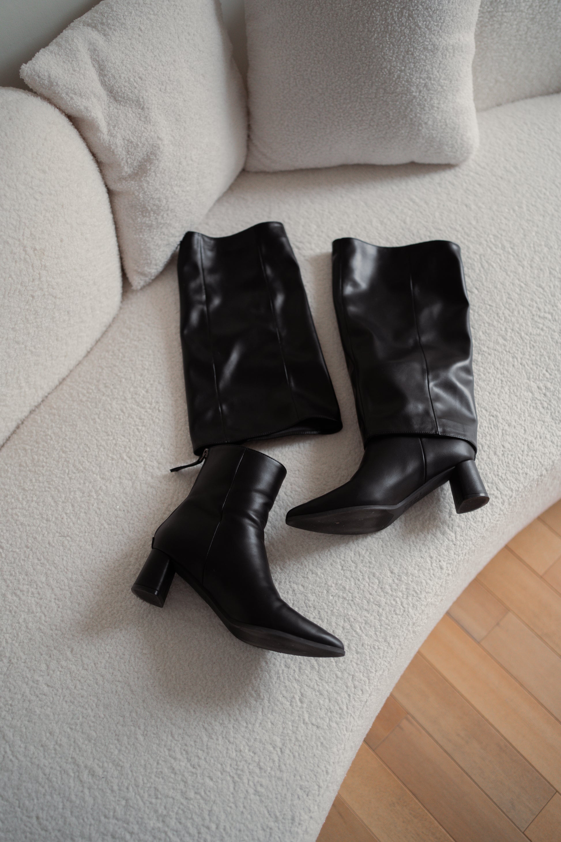可拆式靴筒設計,能自由切換為短靴或長靴,展現兩種造型風格。