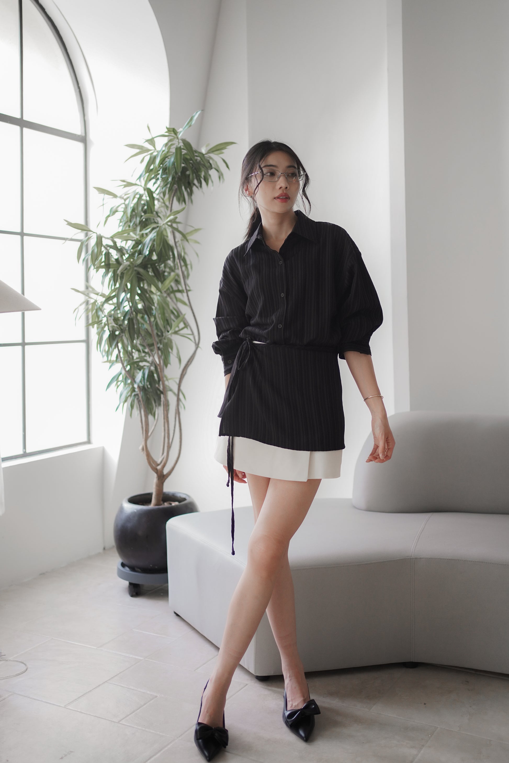 【Black】|霧黑皮革搭配同色蝴蝶結,